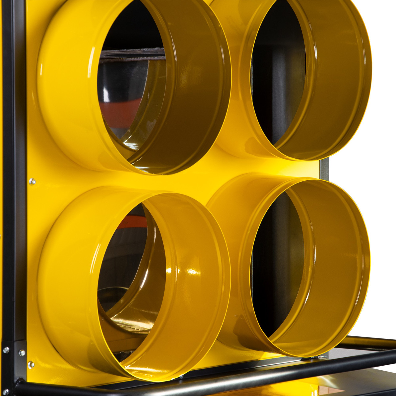 Дизельные теплогенераторы непрямого нагрева BHDN 185 PRO можно использовать внутри помещений при подключении труб дымоотвода с выводом продуктов сгорания наружу здания, в таком случае забор воздуха осуществляется непосредственно из помещения. При использовании прибора на открытом воздухе можно организовать подвод горячего воздуха в помещение или нужную обогреваемую зону через дополнительные трубы воздуховода.